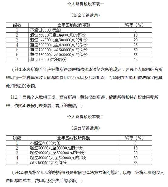 第三条 个人所得税的税率: